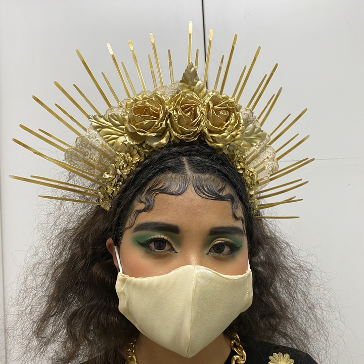 1年次の年度末制作展で制作した作品。「花鳥風月」をテーマにそのカテゴリーの中の「月」をイメージさせた作品です。3人でチームを組んで作品づくりをし、ヘッドピースとマスクの制作、メイクを担当しました。また実行委員に務め、音響係とディレクターとして動画制作に励みました。