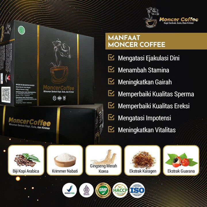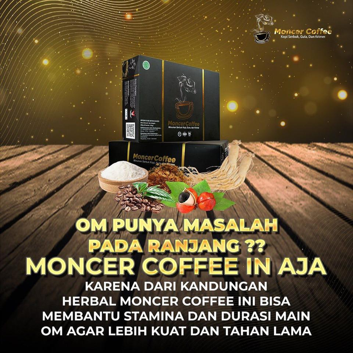 Layanan Tanya-tanya konsultasi dan pemesanan 24 jam, Silahkan hubungi kami via WhatsApp : 0857-2218-9331 =========================================== 🦾 KOPI MONCER HERBAL STAMINA ORIGINAL BPOM 🦾 .. Moncer Coffe Diramu menggunakan hasil laboratorium Profesional dan diproduksi oleh pabrik herbal terbesar yaitu PT. AOBI yang terletak di Tangerang Moncer Coffe Tidak menyebabkan Jantung Berdebar dan kepala pusing serta sakit badan setelah mengkonsumsinya. .. 🦾 Manfaat KOPI MONCER HERBAL STAMINA ORI BPOM 🦾 .. ✔ Membuat efex Langsung terasa setelah satu jam konsumsi ✔ Menambah Durasi Hubungan suami istri ✔ Tidak menyebabkan kebas atau mati rasa .. PRODUK 100% ORIGINAL Isi 1 Box 8 Sachet 200gr per sachet 25gr .. Bahan :Krimer, Nabati, Gula, Kopi Instan, Ekstrak, Malt Kering, Karagen, Maltodekstrin, Perisa Kopi, Perisa Karamel, Ekstrak Ginseng, Ekstrak Guarana .. Saran Penyajian : .. 1. Tuangkan Satu Sachet Moncer Coffee Kedalam Cangkir, 2. Seduh Dengan Air Panas Sebanyak 150 ml, 3. Aduk Sampai Rata, 4. Baik Diminum Selagi Hangat .. Penyimpanan :Simpan ditempat sejuk di bawah 28 derajat Celcius, jauhkan dari sinar matahari langsung .. Perhatian :Tidak dianjurkan penggunaannya terhadap wanita hamil dan menyusui serta anak - anak. .. #moncercoffee #coffeemoncer #kopistamina #kopiherbal #staminaseharihari #kopiuntukpria