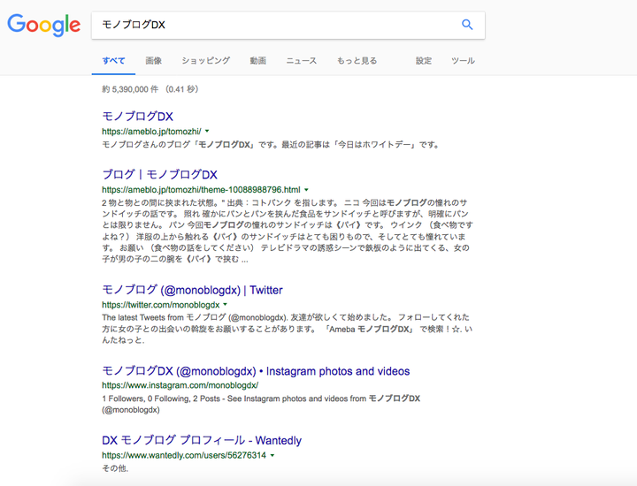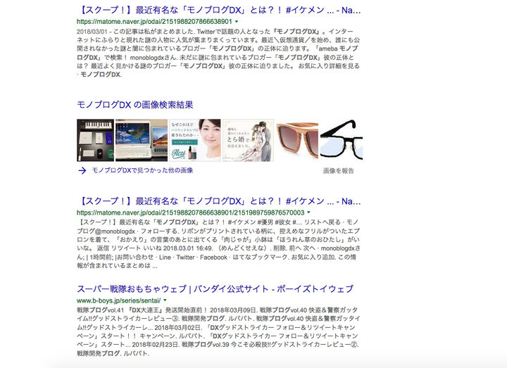 「童貞」「小太り」「メガネ」のモノブログDXのブランド化に成功した。 「モノブログDX」を検索すると約8割は「モノブログ」についてである。(キャッシュクリア・トラッキングオフ済) もはや検索エンジン上で丸裸である。(何をしたらこうなるんですか?)
