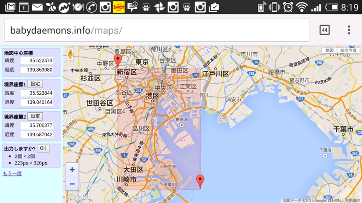 【Google Maps Static Map APIの規約を違反して】、Google Maps JavaScript API v3+jQuery PluginのWeb UIで範囲指定し、HTML5 Canvas上にStatic Map APIで取得した地図を連結し、巨大な地図画像を取得します。処理の99%をクライアントサイドで実現します。一般公開してるのは機能制限版です。