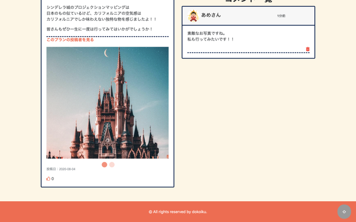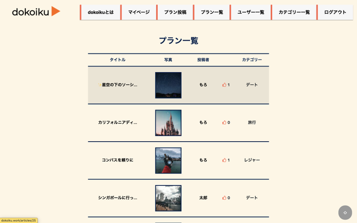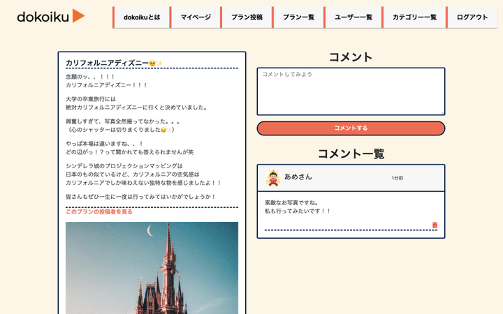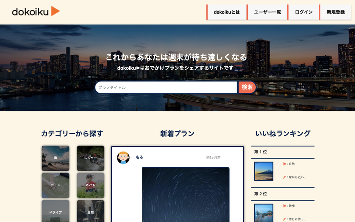 本サイトは家族やカップル、1人旅でもその日の予定は空けているけれど、実際にどこにいくかは決められていない人に向けたサイトです。このサイトではユーザー同士がお出かけをしたプランをシェアすることで、行ってみたい!と思えるものが見つかります。