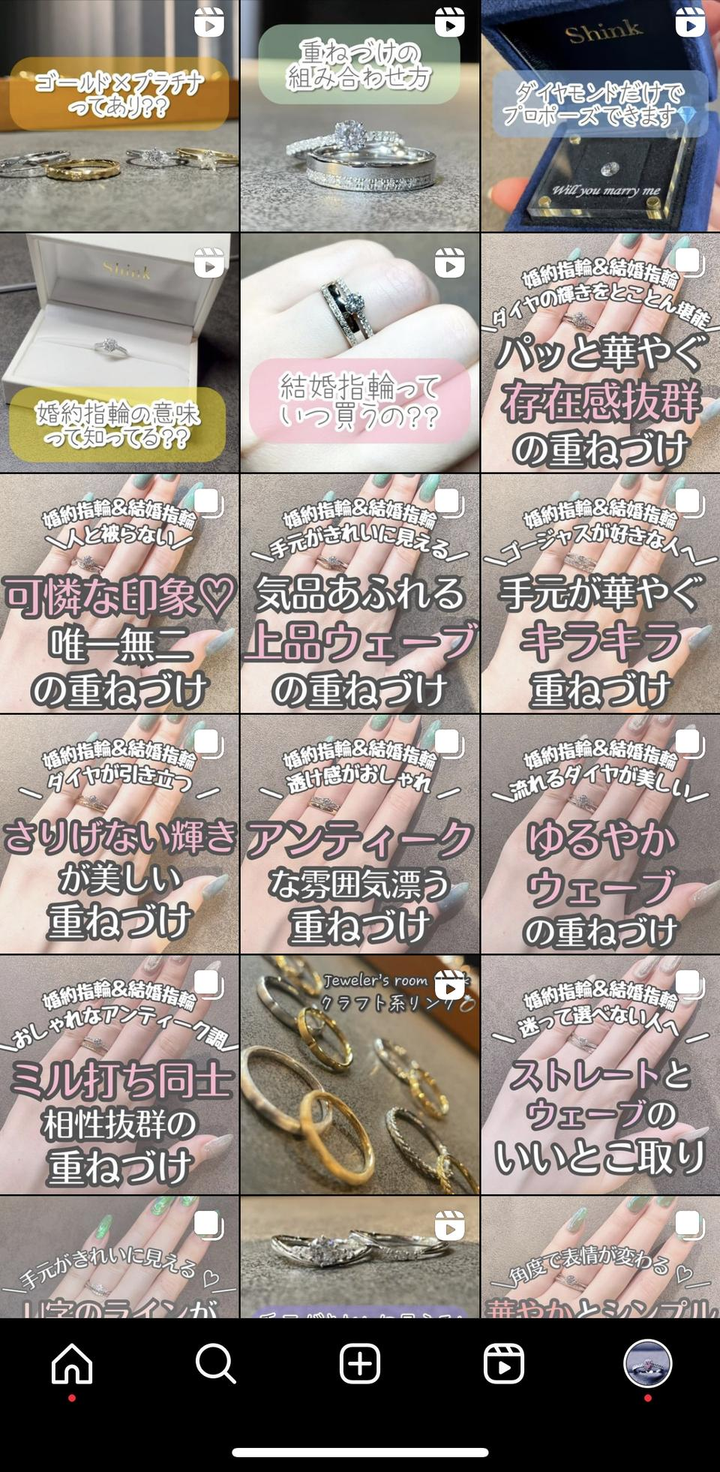 「Jeweler's room Shink」というジュエリーブランドのInstagramのフィード・リール作成をしております。