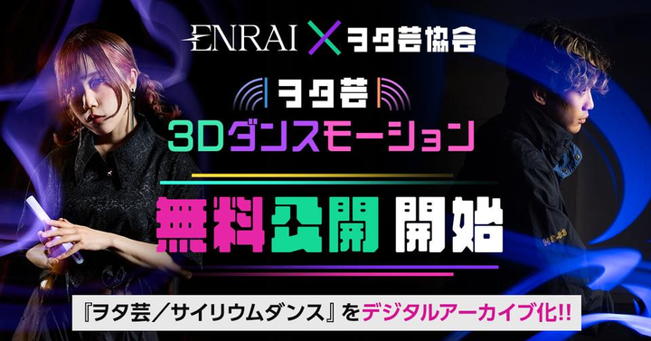 配布ページはENRAI運営事務局様より https://enraise.net/work-detail/cmad5qphl0000jo04sy2n233e ENRAI・株式会社ブックリスタ 様の依頼で制作したヲタ芸モーション素材集。 ヲタ芸協会様のご協力により、モーションアクターとして、いかちゅん 様 / 白狐 様 のパフォーマンスを光学式モーションキャプチャーで撮影。 当方はキャプチャー撮影までの準備と、キャプチャーデータの修正・編集・各種ゲームエンジンへの組み込み・データ変換などを担当した。
