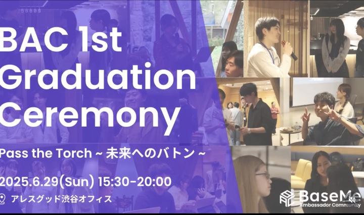 【概要】 キャリアプラットフォームBaseMeにて、学生コミュニティ「BAC(BaseMe Ambassador Community)」の運用リーダーを担当。立ち上げ期からコミュニティ設計・運営をリードしつつ、プロダクトチーム・デザイナーチーム・クライアント企業を巻き込んだ組織横断プロジェクトを推進し、ユーザー獲得とロイヤリティ向上に貢献。