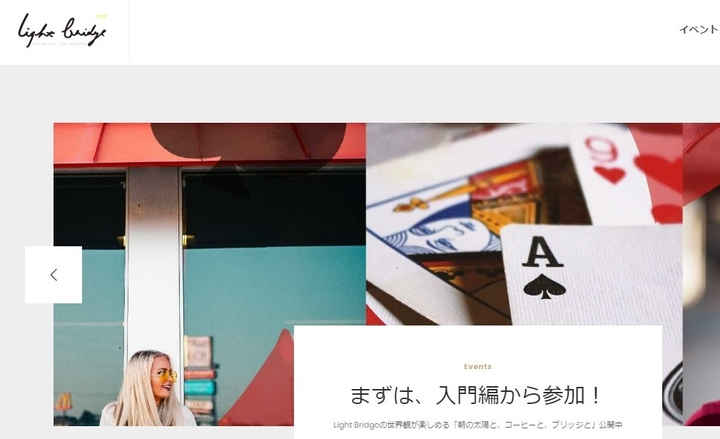 「Light Bridge(ライトブリッジ)」では、世界三大カードゲーム(トランプゲーム)の一つであり、英国発祥の由緒正しい交流ツールでもある「CONTRACT BRIDGE(コントラクトブリッジ)」を、誰もが気楽に楽しめるよう、カフェでの体験イベントの開催をはじめ、さまざまな企画を展開しております。