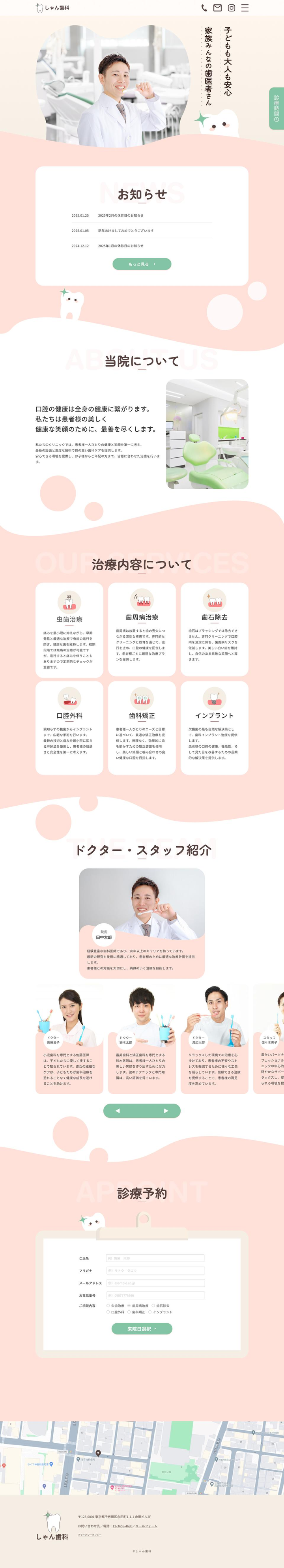 FigmaとPhotoshopを使用しました! 「家族全員が安心して通える歯科医院」をテーマに、子供を持つ家庭に寄り添った温かみのあるデザインで仕上げたこのHPは、視覚的な楽しさと使いやすさを両立させています! コーラルピンクを基調としたカラーパレットに、ミントグリーンのアクセントを加えることで、親しみやすさと清潔感を同時に伝え、来院への心理的ハードルを下げる工夫を凝らしています! ファーストビューには、歯のシルエットをキャラクター化したロゴが愛らしく配置され、乳歯をイメージすることで、小さなお子様から大人まで安心していただけるようにデザインしました!キャッチコピーとともに、ポップで親しみやすい印象を強調し、家族全員が気軽に通える雰囲気を出しています! 機能面にもこだわり、ペライチのプラットフォームを活用することで、患者様がストレスなく予約できるスムーズな導線を実現しました! 診療内容や予約方法は直感的に理解できるレイアウトで整理し、初めての方でも迷わず必要な情報にたどり着ける設計です!お子様の初めての歯医者体験を前向きにし、家族全員が笑顔で通える場所としての魅力を最大限に引き出しています! このHPは、単なる情報提供にとどまらず、歯科医院の温かみと安心感をデザインの細部まで反映しています!家族全員に優しく寄り添う歯科医院としてのブランドを視覚的に表現し、患者様との信頼関係を築くサポートをします!