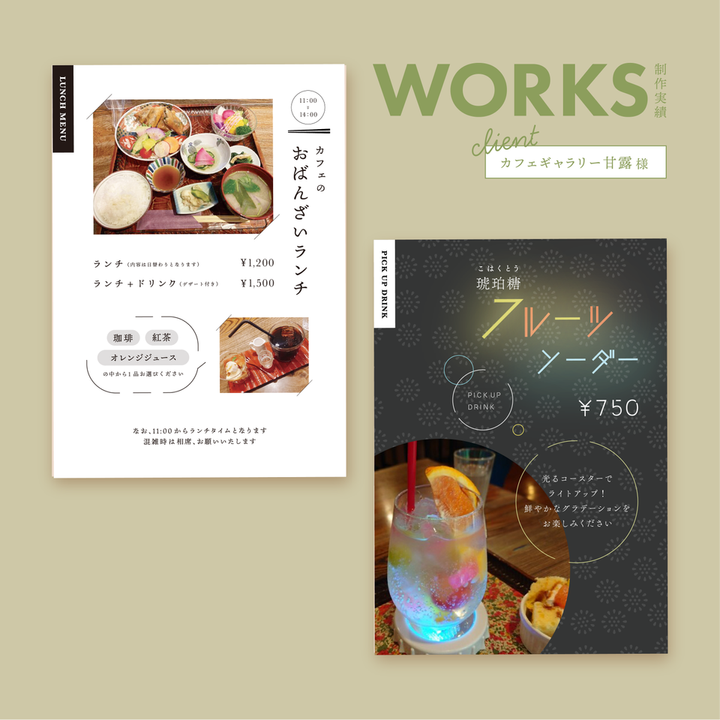 和カフェ「カフェギャラリー甘露」様のランチメニュー表リニューアルのお手伝いをさせていただきました。