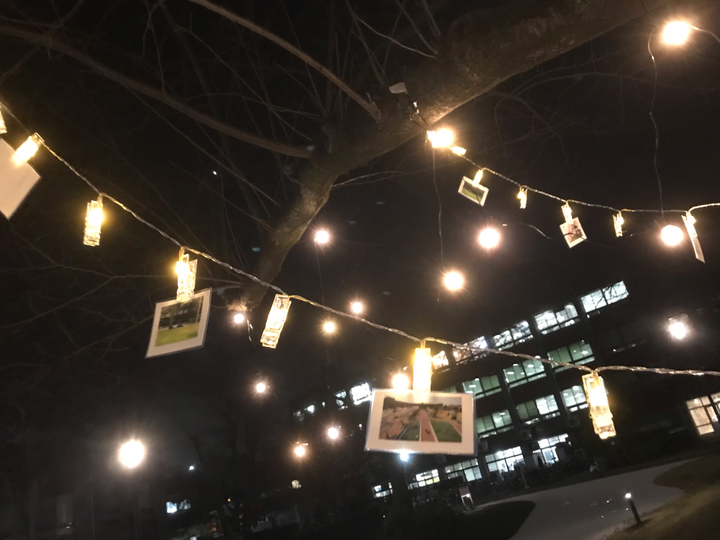 メディアアートとして2018年冬の作品です イルミネーションの昼間には楽しめない事への疑問から昼間でも楽しめるよう庭での思い出写真を募集し飾って行きました。 大学内のイルミネーションを個人でデザインし制作したのは50年間で初の試みのようでしたが、庭のリニューアルに合わせ発表するにあたりました。