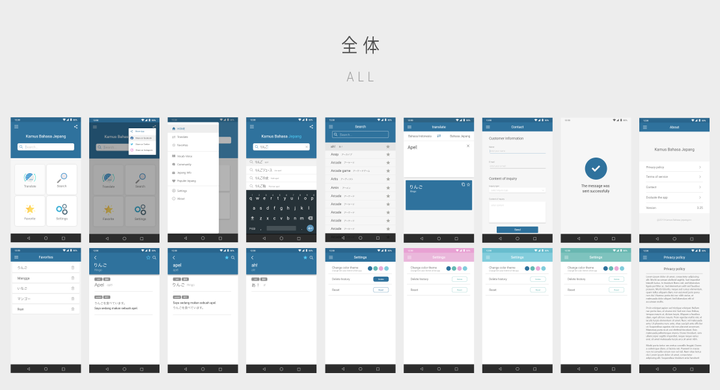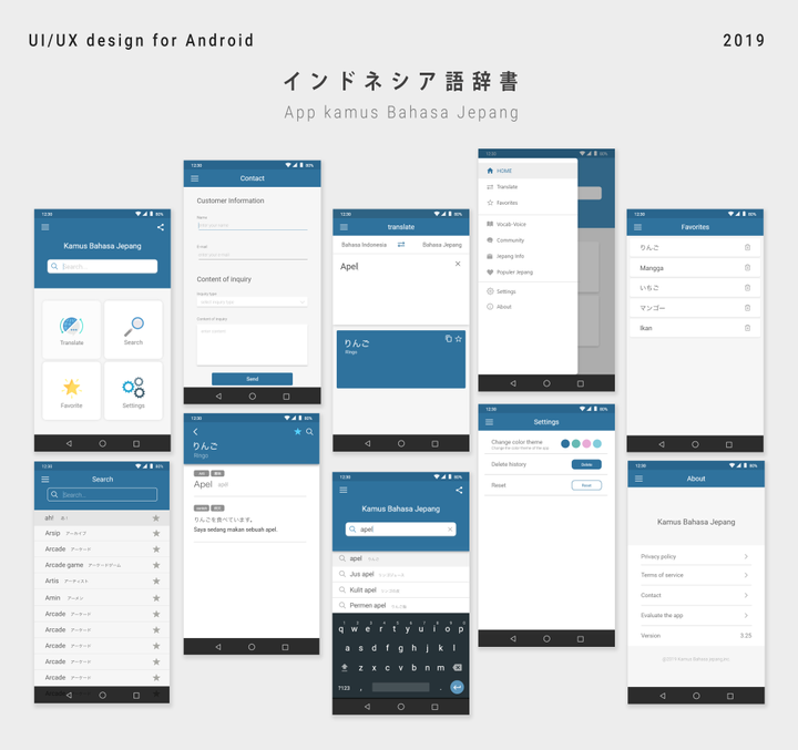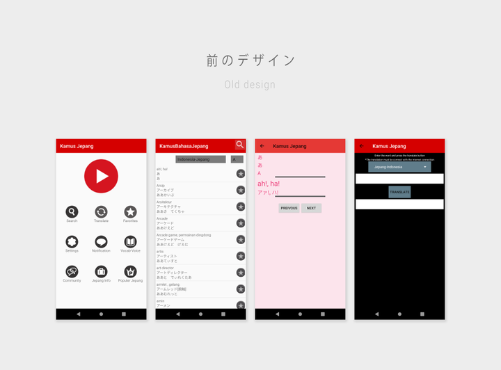インターン先の制作物である「App Kamus bahasa Jepang」のリニューアルデザインを担当しました。