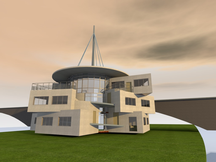 円形スロープを生活の一部に! 天神橋に上り下りするための円形スロープを、集合住宅にコンバージョンした。スロープが部屋の中に入り込み、床が傾斜になっている部分があったり、凹んでいる部分があったり、スロープが作る空間の特徴が、新しいライフスタイルを作り出す。