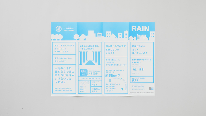東京都下水道局主催の若者向け東京下水道発信プロジェクト「東京地下ラボby東京都下水道局」という約3ヶ月間のワークショップに参加。下水道の浸水の防除という役割に着目し、雨の専門誌を制作しました。
