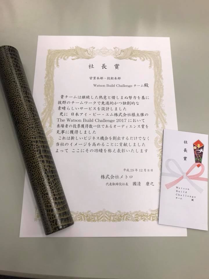 株式会社メトロにて社長賞をチーム代表として受賞した