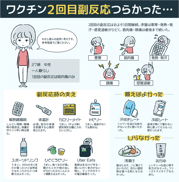 コロナワクチン2回目の副反応が辛かったので、今後接種する人の参考になればと図解を作成しました。