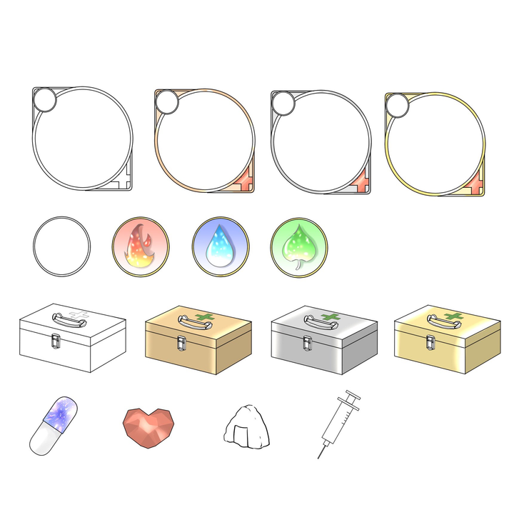 救急セットや医療器具をモチーフにしたゲームのUIデザイン