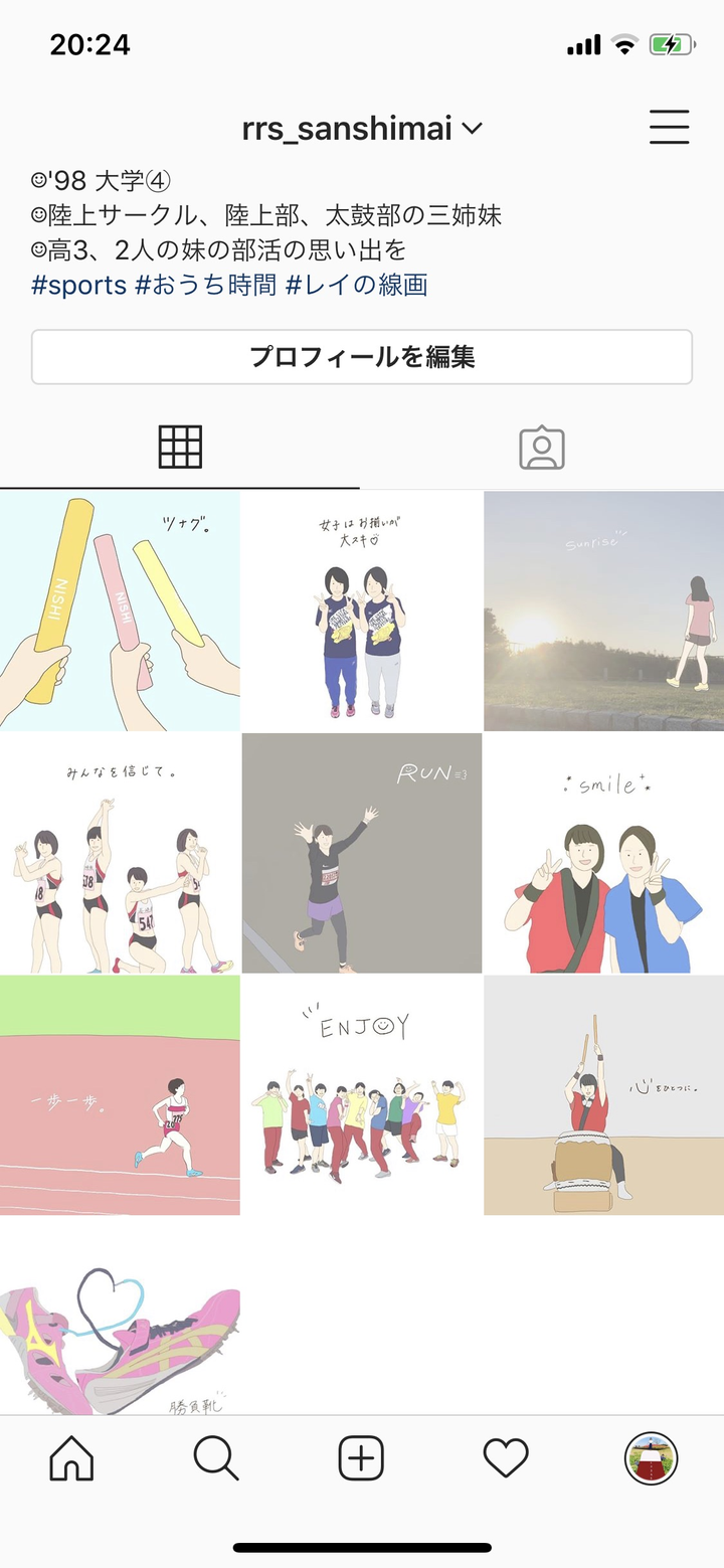 2020年、コロナの影響で高校最後の大会がなくなってしまった双子の妹(陸上部、太鼓部)を少しでも元気づけようと書き始めたイラストです。かわいも絵やジャニーズやYouTuberなどのアーティストのイラストはInstagramに溢れていますが、あまりスポーツに特化したものは見かけないなと思い、公開を始めました。