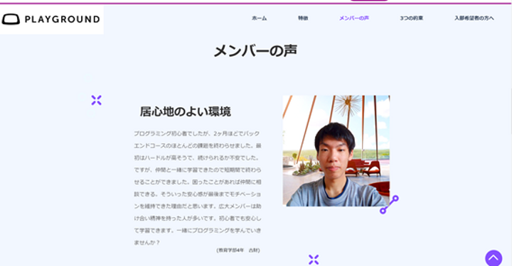 広大の先生から、授業中にサービスの告知をするから作ってほしいと言われ、仲間と1日ほどで作りました。広大拠点の初期メンバーで作り上げ、絆が深まりました。コミュニティマネージャーのやりがい、達成感を感じた瞬間でした。ですが授業告知から1週間たっても、1人しか入会希望者が来ませんでした。問い合わせがあってから、こちらが対応する形で面倒なのだろうと思い、今のように問い合わせの工程をカットしました。このころからコミュニティマネージャーとして広報に力を入れようと意識するようになりました。