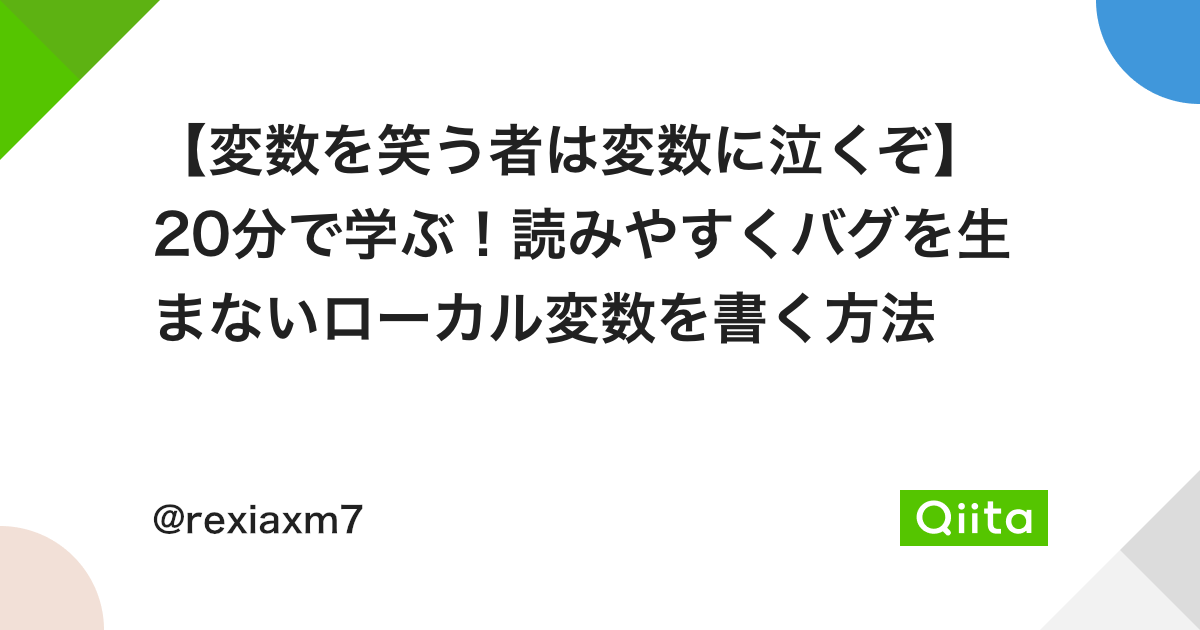 【変数を笑う者は変数に泣くぞ】20分で学ぶ!読みやすくバグを生まないローカル変数を書く方法