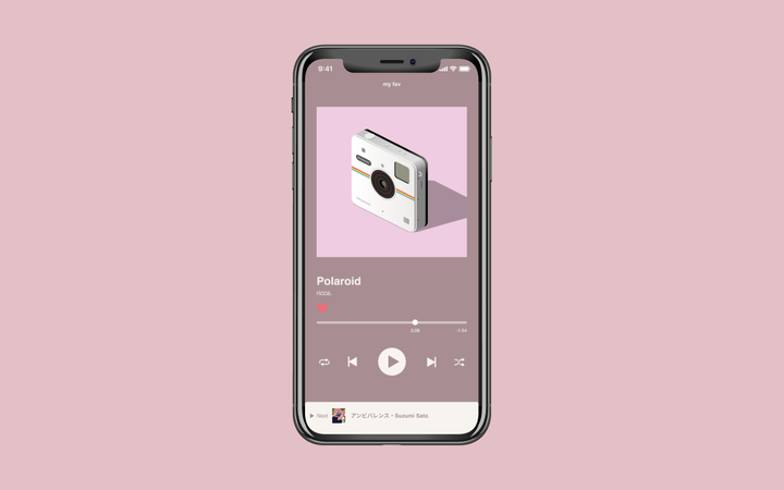 ターゲット: 音楽好きな、OLの女性 カラーは、大人の女性を意識してスモーキーな感じにしました。 次に流れる曲が分かるといいなと思ったので、画面下部に次の曲情報を表示しています。