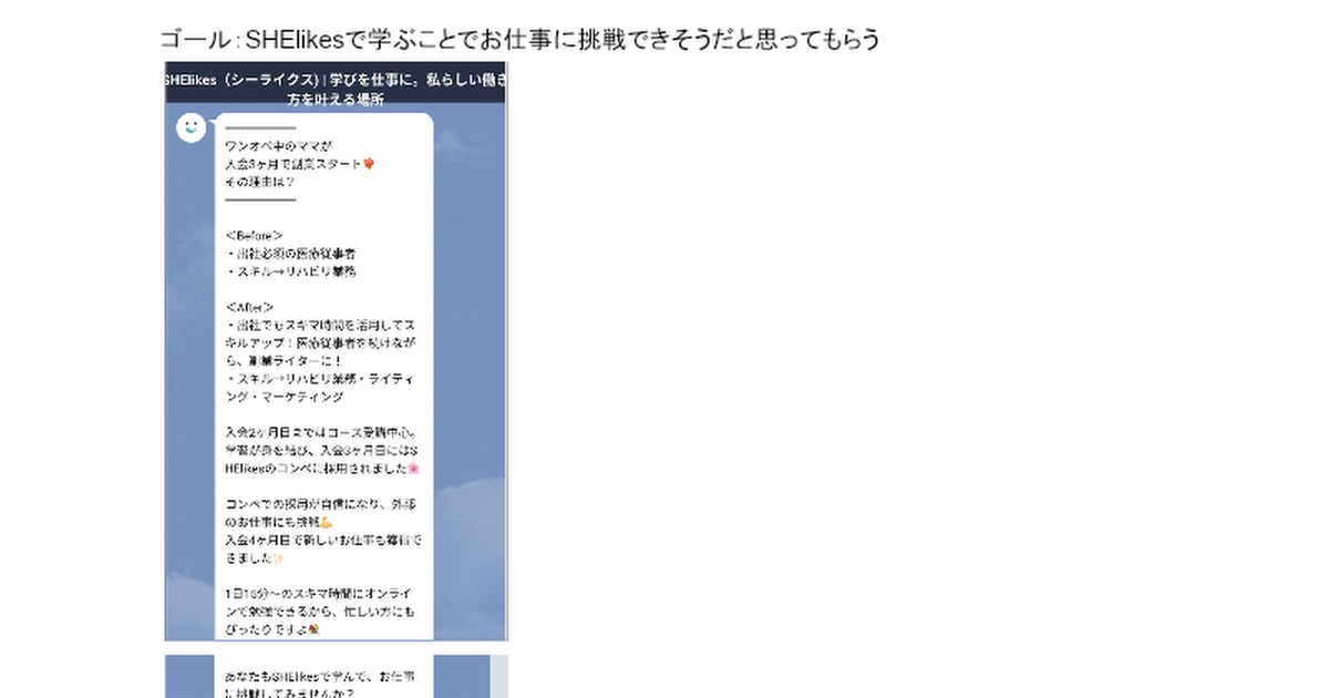 オンラインスクールSHElikes受講 / ライティング、マーケティング中心
