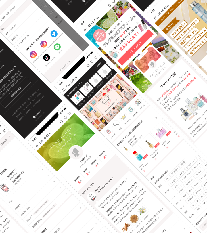 プロダクトデザイナー兼グラフィックデザイナー。 サービスサイト「カラリア 香りの定期便」のUI改善やLPデザイン、キャンペーンデザイン、バナー作成などから、チラシやノベルティのデザインまで幅広く担当しました。 また、採用やチームビルディングにも携わりました。
