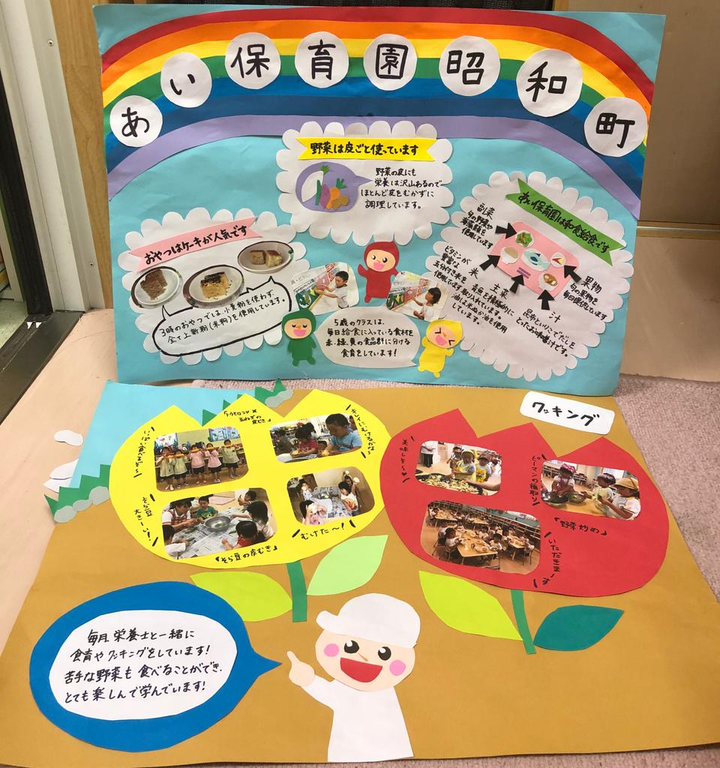 栄養士 0-5歳までの調理(150人)と栄養指導を実施。また、食育イベントを開催、栄養士会に出席し、情報共有をしていました。