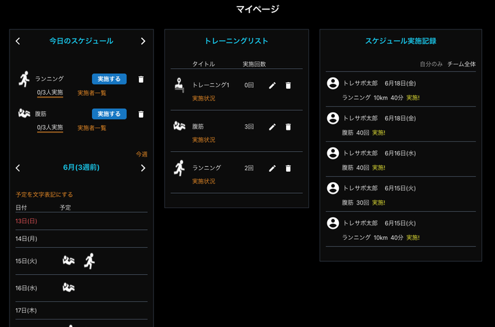 フロントエンドにNext.js、バックエンドにgraphen-djangoを使用し、作成しました。 トレーニングのスケジュール管理に特化したアプリで、日々のスケジュール確認と記録のためのツールです。