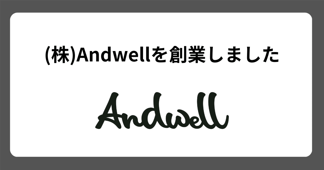 株式会社Andwell(アンドウェル)を創業しました|重崎 竜一(Shige)