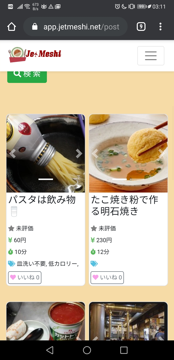 時短飯を投稿できるアプリです。 レビュー、いいね、いいねリスト、栄養タグ、調理費、調理時間などを見れる機能があります。 PHP/Laravel, MySQL, JavaScript Docker, nginx ,AWS lightsail/Ubuntu, S3, let's encryptなど使用