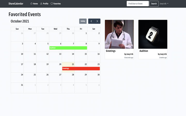 ・期間 1ヶ月半 ・サービス概要 イベントをカレンダー形式で共有できる。 ・作成理由 団体ごとに使用しているスケジュールカレンダーに異なるため、様々な団体のイベントから自分専用のスケジュールカレンダーを簡単に作れると便利だと思い、開発しました。 ・拘った点 フォロー及びお気に入りはVue.jsで作り、非同期でフォロー、お気に入りの登録と解除を行えるようにしました。また自分主催用、フォロー中の団体用(タイムライン)、お気に入り用それぞれのイベント用にカレンダーを用意し、簡単にそれぞれカスタマイズできるようにしました。 ・その他機能 ログイン イベントの追加、編集、削除、検索 ・使用言語、フレームワーク PHP、JavaScript、Laravel、Vue.js