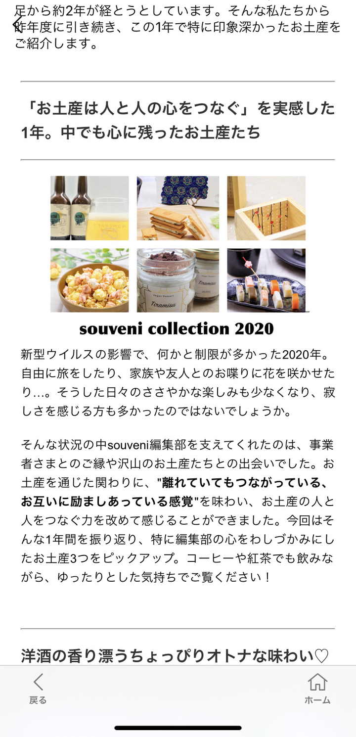 お土産紹介アプリ「souveni」内の記事コーナー「ストーリー」にて2020年のまとめ記事を執筆を担当いたしました。