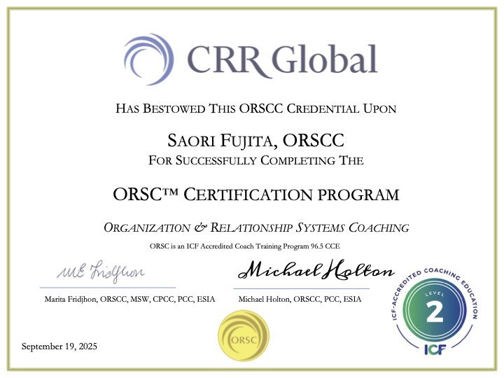 組織と関係性のためのシステムコーチ ORSCC取得 (Organization & Relationship Systems Certified Coach)