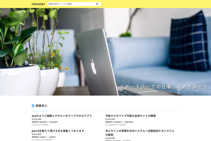 リモートワークの仕事、求人をまとめて探せるリモートワーク検索エンジンです。クラウドソーシングサイトや求人サイトのあらゆるリモートワークの仕事、求人を探すことができます。 クローラーの実装、ウェブサイトのデザイン、実装、デプロイなど全て一人でやりました。
