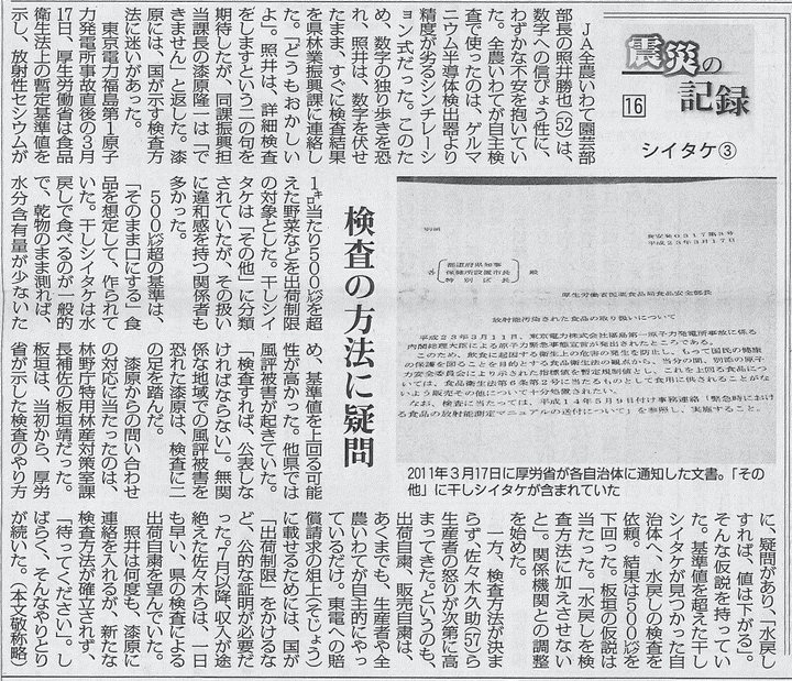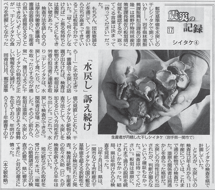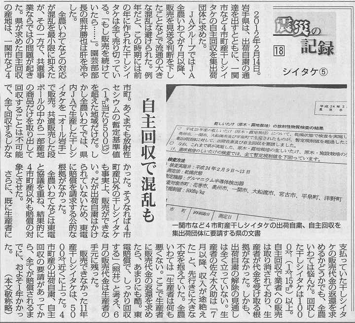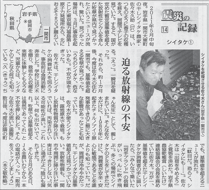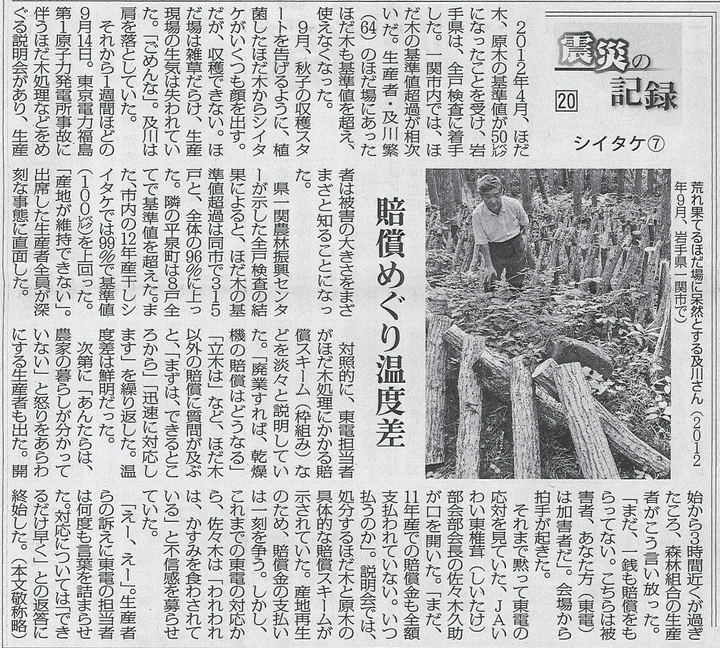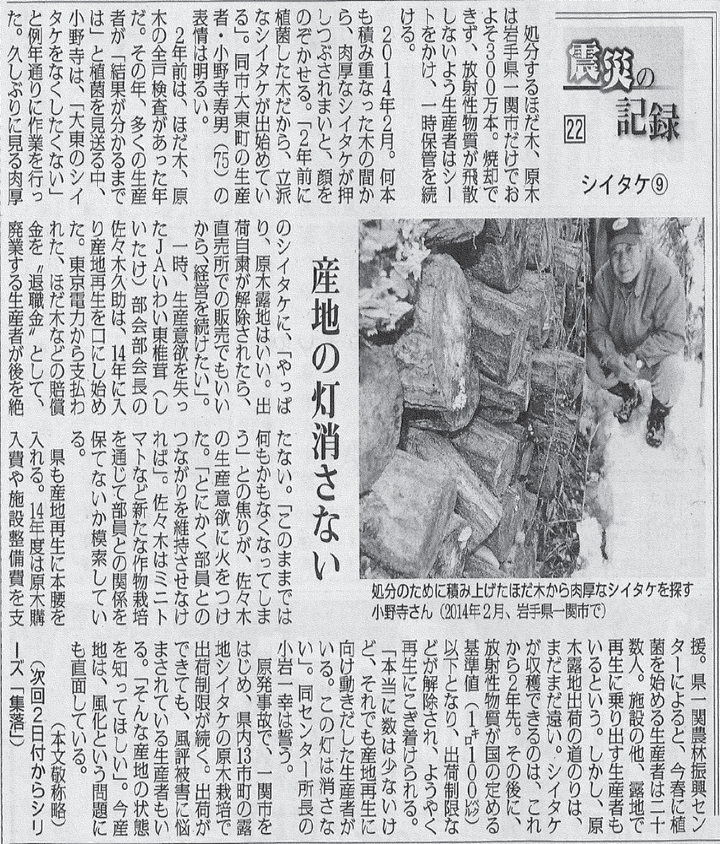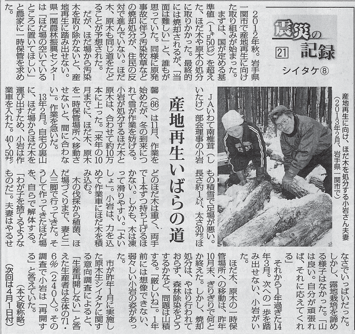 日本農業新聞 連載企画「震災の記録」シイタケ編