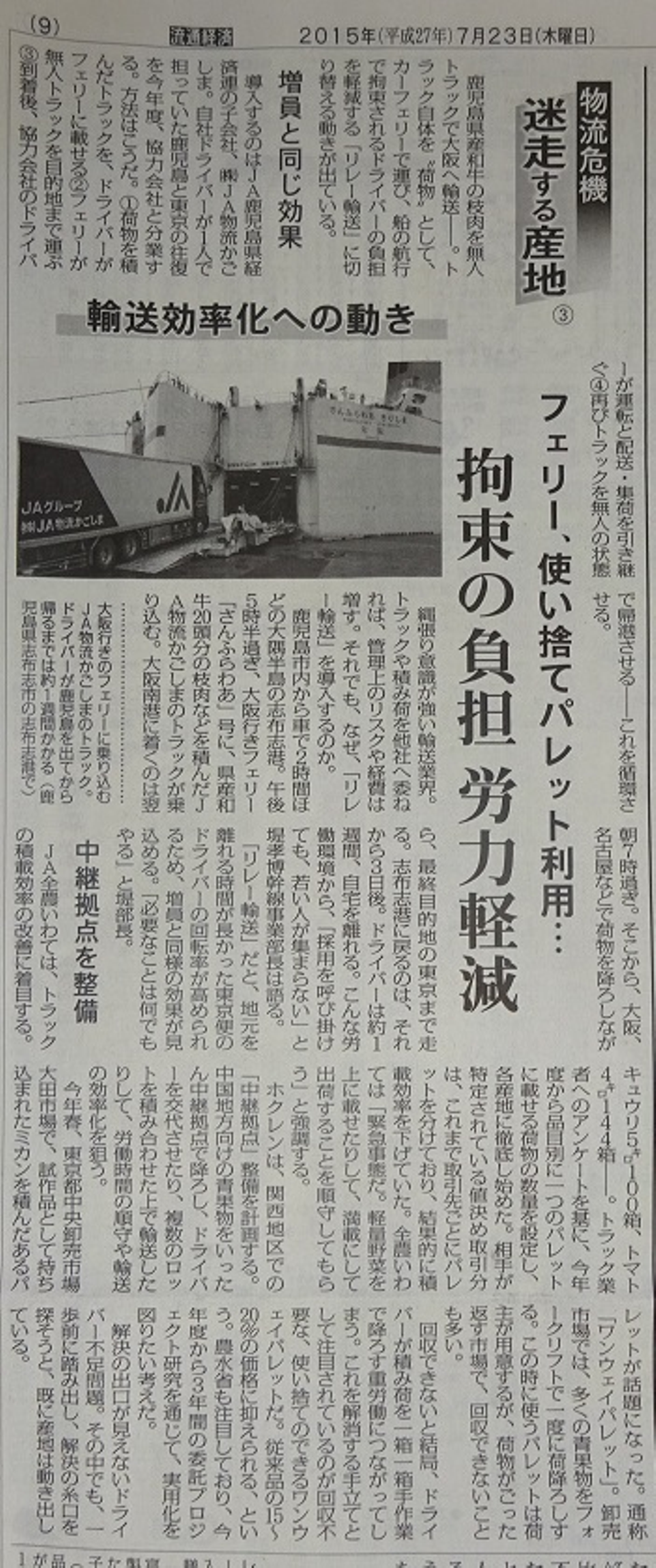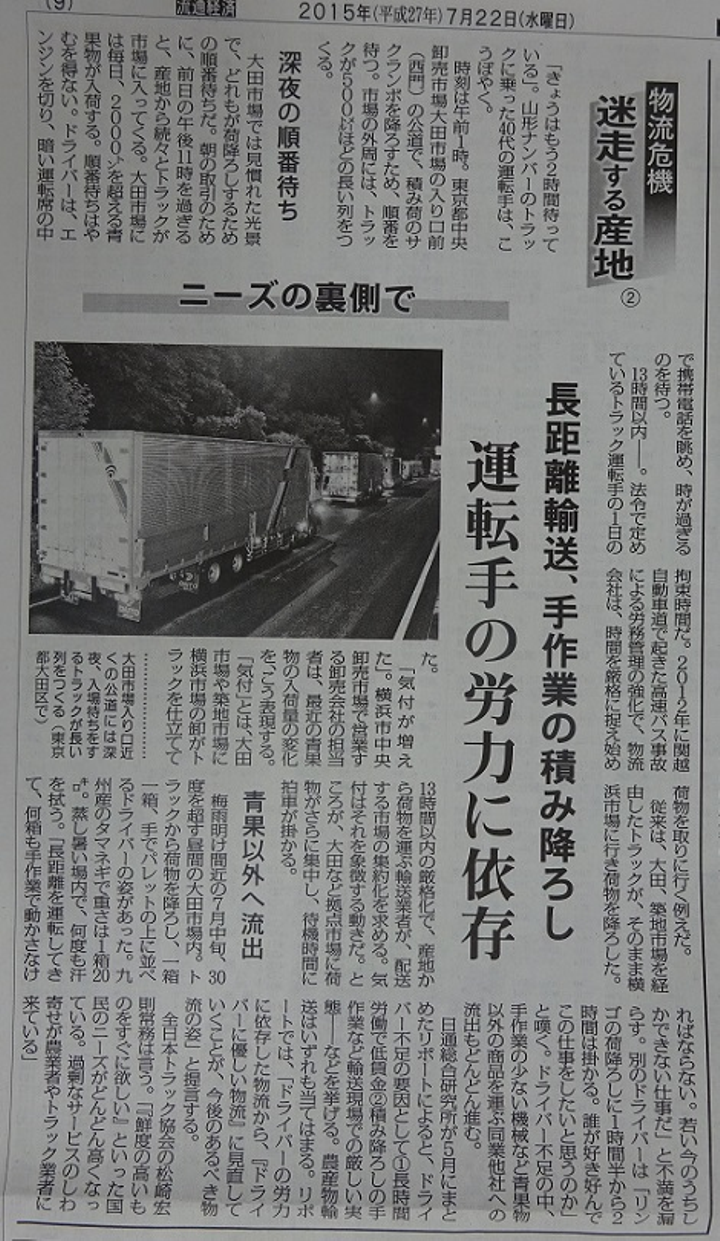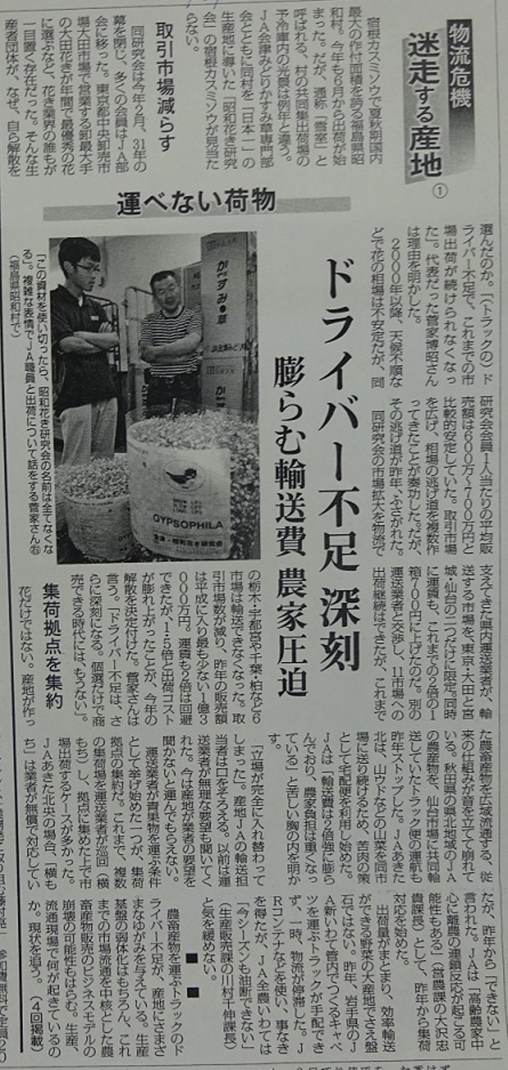 日本農業新聞 連載企画「物流危機 迷走する産地」