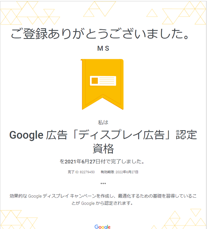 Google Skillshop "Google広告「ディスプレイ広告」"認定資格取得