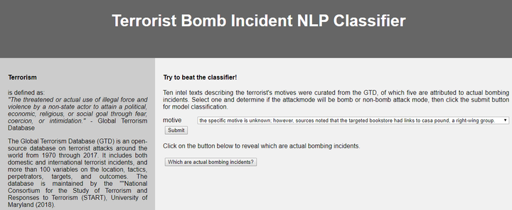 Terrorist Bomb Incident NLP Classifier
