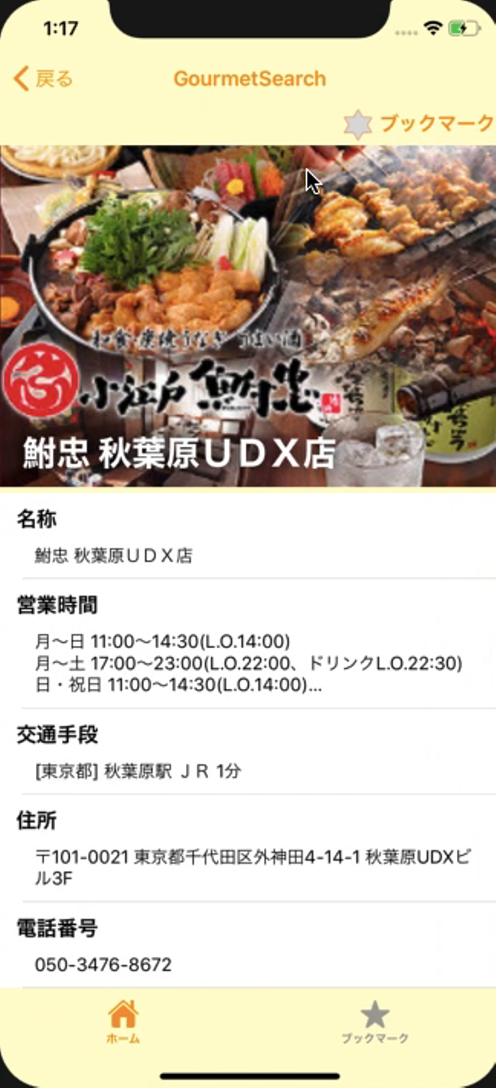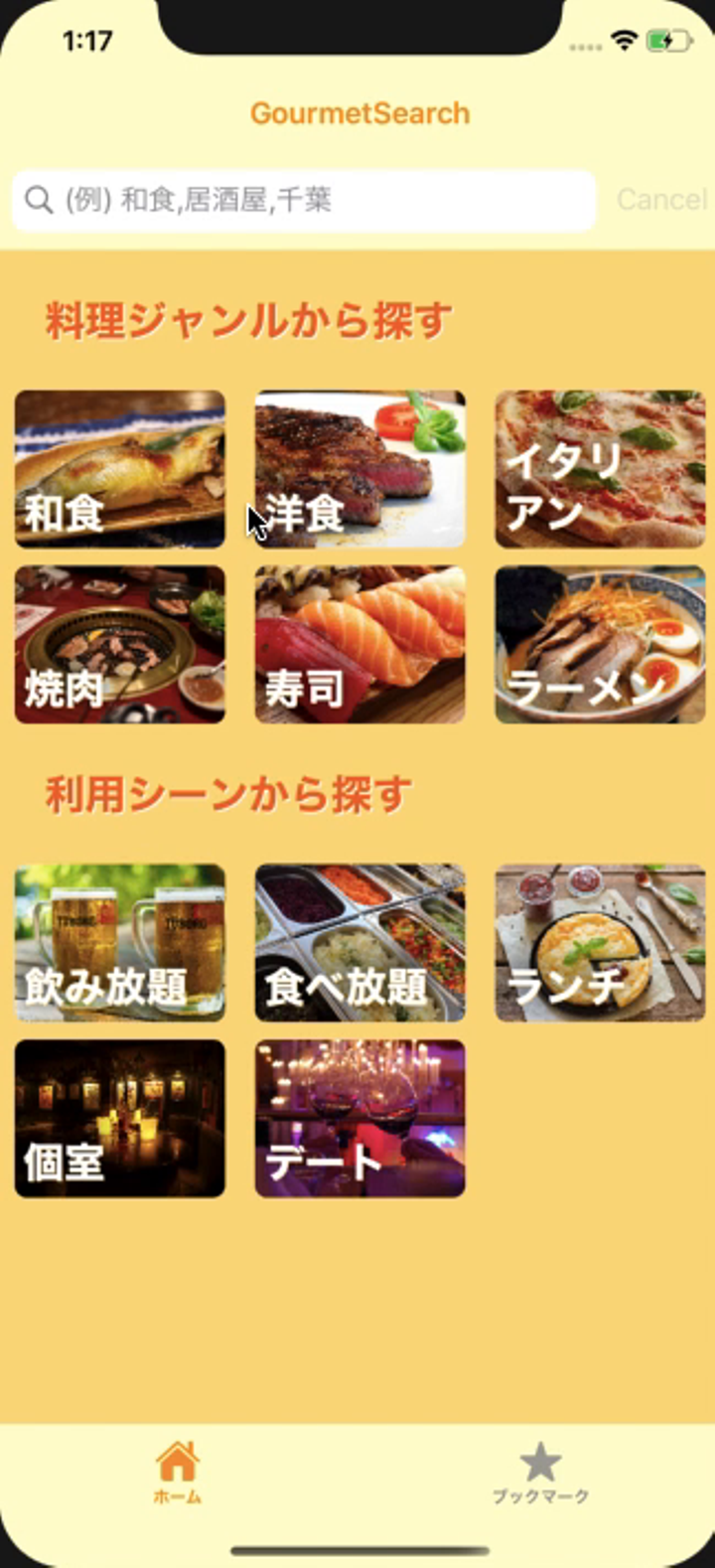 グルメサーチアプリです。API処理の実装、テーブルビューの無限スクロール、インクリメンタルサーチ機能を実装しました。
