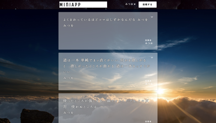 コメントを追加したり、投稿者のコメントの閲覧などが出来る簡単なミニアプリ。 初めて私が作った作品です。