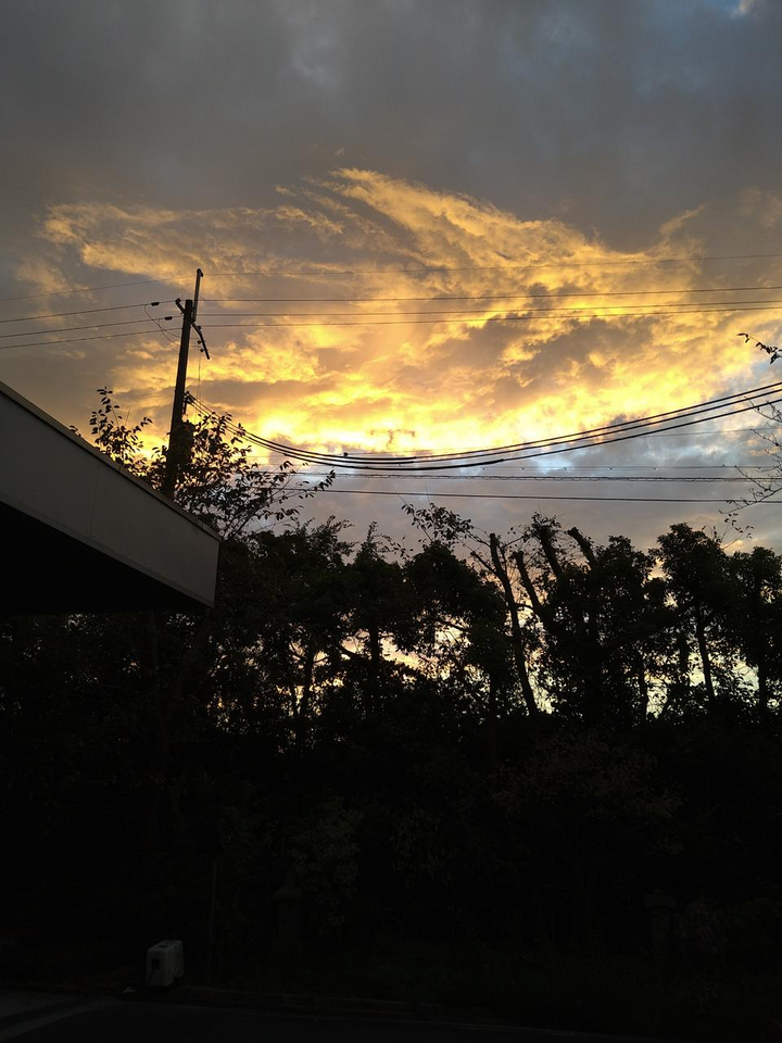 ある日の夕方、夕焼けで雲が金色に光っていました。