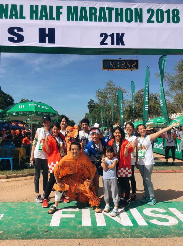 毎年12月に開催されるアンコールワット遺跡内を走るアンコールワットマラソンのハーフ(約21km)に参加しました。 人生で初のハーフマラソンに参加してみましたが、きつさよりも普段は入場料を払わなければいけない区画で走ることが出来貴重な体験に対する感動が大きかったです。 今後はマラソンなどのイベントに参加していきたいと考えています!