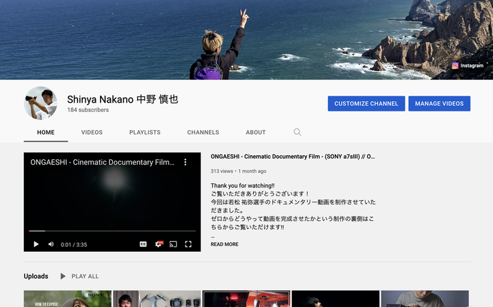 ビデオグラファーの方向けに、自分のこれまでの映像のノウハウや撮影のテクニックなどをYouTubeを通じて発信しています。