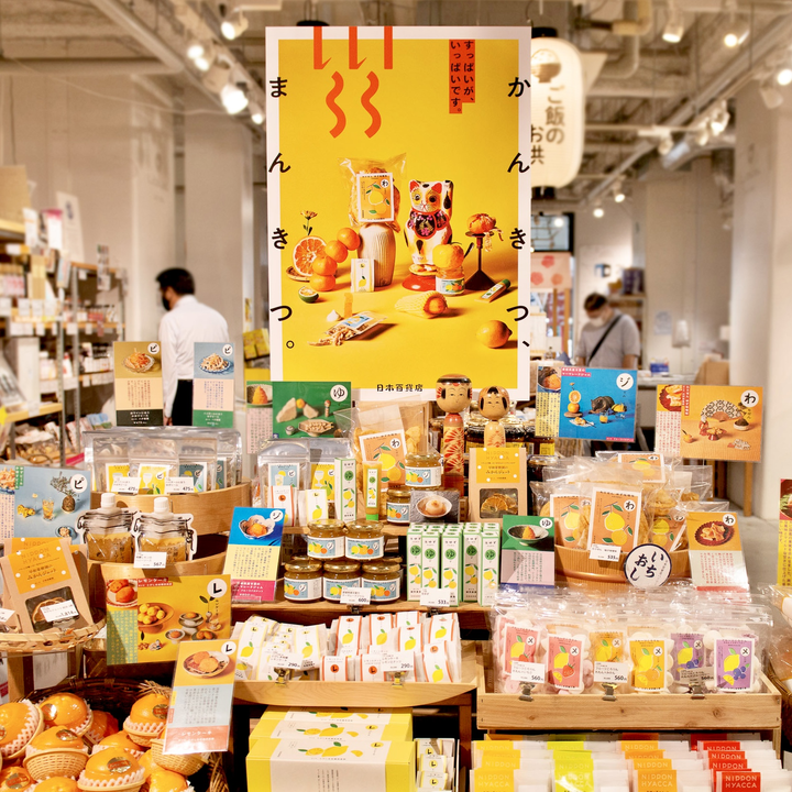 日本百貨店のPBは作り手の顔がみえるメーカーさんとのコラボ企画。「日本の文化」「ユーモア」「新編集」のキーワードから「かるた」をモチーフにしたパッケージデザインを開発。「かるた」をモチーフに表現することで、新しさと懐かしさを併せ持った可愛らしく楽しげな印象のパッケージに。商品が増え、様々な絵柄が生まれたことで、棚もお店も更に賑やかになりました。