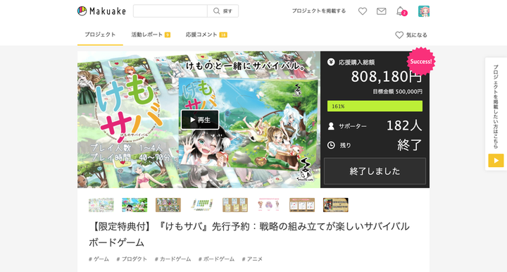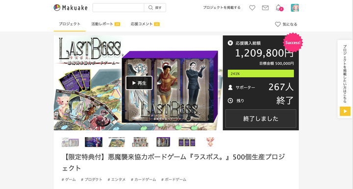 ボードゲームの制作資金調達のために2回のクラウドファンディングにより合計200万円の調達に成功し、無事リリースまで行いました。