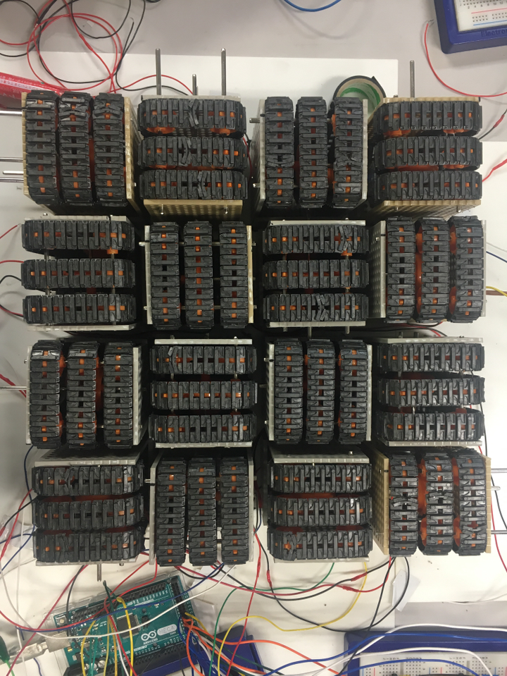 小型のベルトコンベアモジュールをアレイ状に交互に並べデスクトップとし、ベルトコンベアの動きを制御することでデスクトップ上の物体の位置を自由に制御する