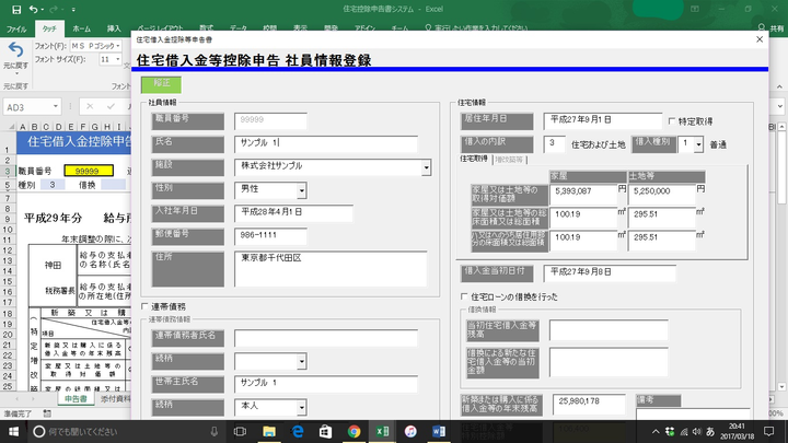 年末調整業務におけるタスクの難易度が高い「住宅借入金控除申告」について、 所定項目に必要事項を転記するだけで正しい申告ができるプログラムです。