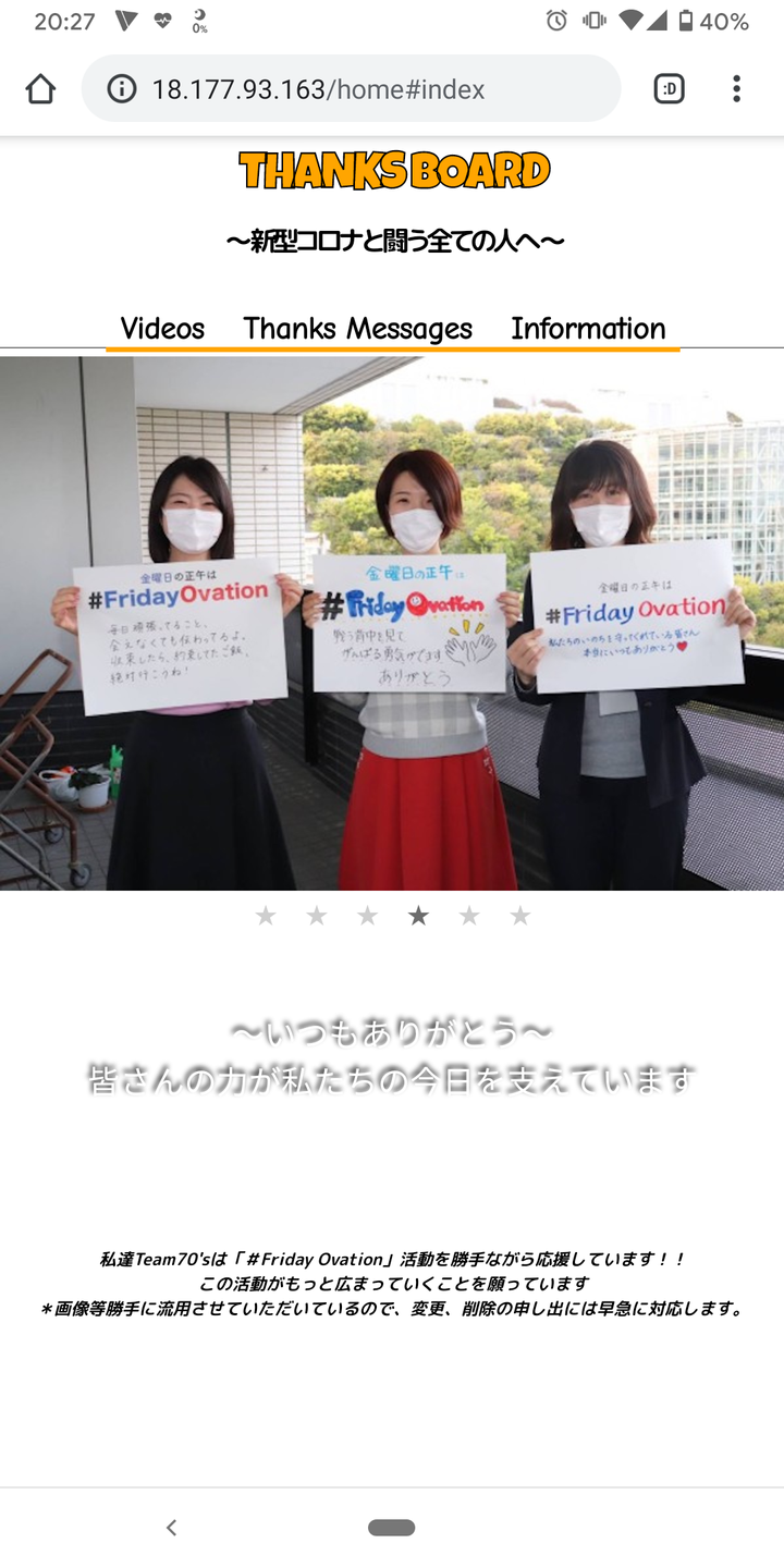 TECHCAMPの同期でチーム開発を行いました。3人でDB設定からデプロイまで行いました。 新型コロナに対して自分達に出来ることを考えて、形にしてみました。私は主にオープニングページとトップページのフロントエンドを行いました。Jqeryのプラグインのslickを使いスライダーの実装、クリックスクロールを実装しました。 またレスポンシブデザインを採用し、スマホからでも閲覧出来るようにしました。 詳しくはGitHubをご覧ください。 よろしければのぞいて頂けるとありがたいです。