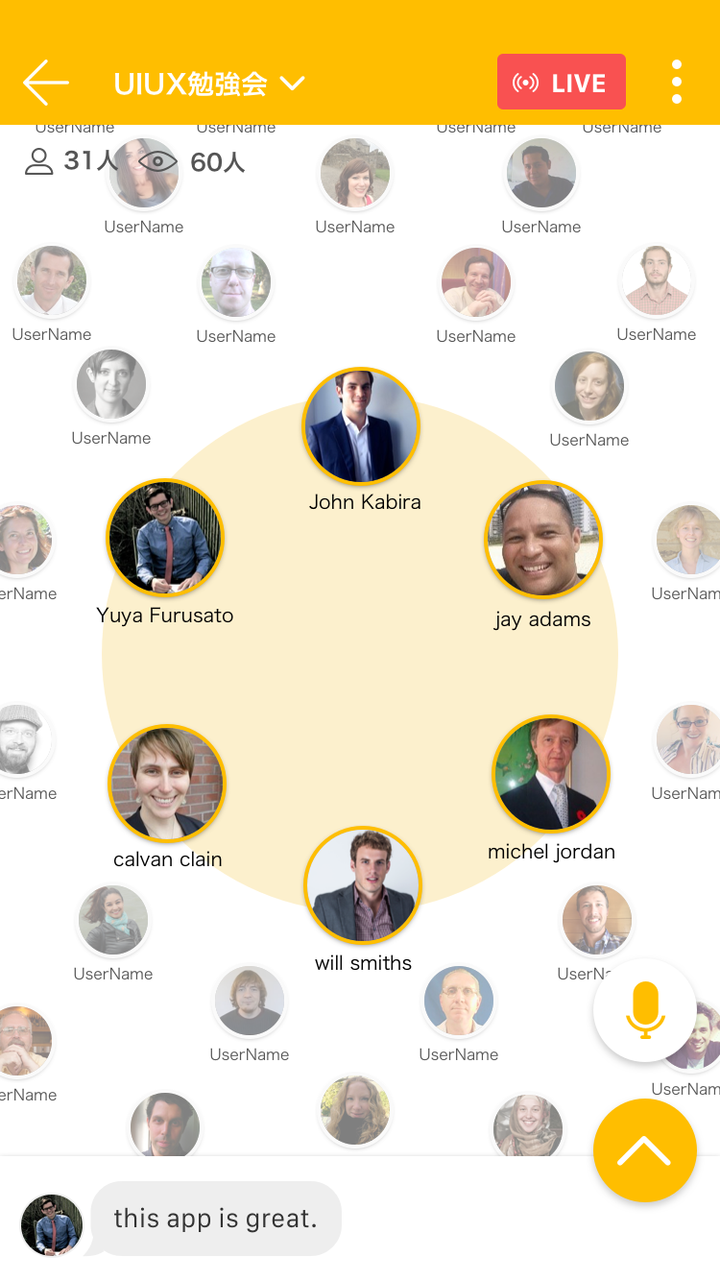 グループ音声ライブアプリのiOS版を作成 UI設計から実装までを担当