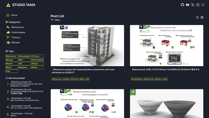 技術Blog 主に『Rhinoceros』『Grasshopper』『Three.js』などについて執筆