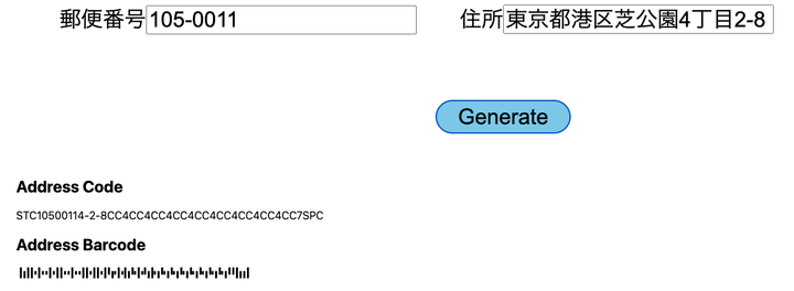 ・日本郵便指定のカスタマバーコードを、フォーム等に入力された郵便番号と住所を基に変換して生成するパッケージの開発を行いました。 パッケージの仕様:https://www.post.japanpost.jp/zipcode/zipmanual/p17.html 使用技術:TypeScript