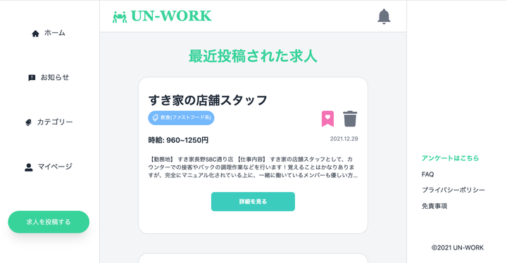長野県立大学生専用の投稿型アルバイト掲示板サービスを開発